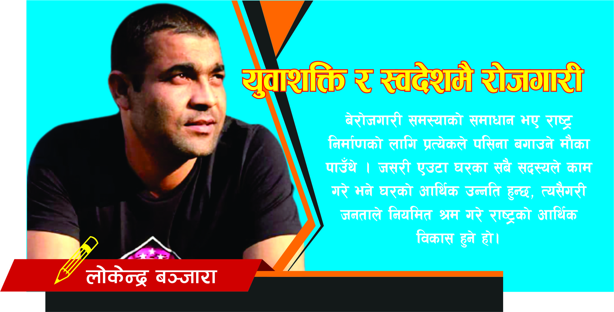 बेरोजगारी समस्याको समाधान भए राष्ट्र निर्माणको लागि प्रत्येकले पसिना बगाउने मौका पाउँथे । जसरी एउटा घरका सबै सदस्यले काम गरे भने घरको आर्थिक उन्नति हुन्छ, त्यसैगरी जनताले नियमित श्रम गरे राष्ट्रको आर्थिक विकास हुने हो । तर हाम्रो देशमा चाहेर पनि काम गर्छु भन्नेले काम गर्न पाउँदैन । हो, ती काम गर्छु भन्नेलाई सरकारी सेवामा रहेका घुस्याहा र टाइमपास मात्र गर्ने, कसैको बलबुताबाट पद ओगटेकाले छोडिदिनुपर्छ । कार्यालय समयमा टाइम पासमात्र होइन कर्मचारीले काम गर्नु आवश्यक छ । अर्कोतर्फ, सरकारले पनि काम गर्ने इच्छा शक्ति भएकालाई काम दिनुपर्छ । राष्ट्रलाई आर्थिक रूपमा सक्षम बनाउने हो आर्थिक क्रान्ति साँचै ल्याउने हो र जनताको परिश्रम चाहिन्छ भने काम दिनुपर्छ । सबै मानिसले काम पाउने हो भने भोलिदेखि नेपाल बन्द गर्न, नेताहरूको पछौटे बन्न, राँको बोकेर बिच सडकमा टायर बाल्न, जुलुस गर्न बन्द हुनेछ । अब सरकारले प्रशस्त रोजगारीको सिर्जना गर्नु आवश्यक छ । विभिन्न ठाउँमा उद्योग खोलेर, स्वदेशमै पसिना बगाउने अवसर दिनुपर्छ । अनि उद्योगबाट उत्पादित सामान चीन, भारत कहाँ लगेर हुन्छ बेच्ने अनि समृद्ध बन्ने बाटो समात्न ढिला भइसक्यो । काम अनुसारको तलब दिएर सामानको नाफा सरकारले राष्ट्रको विकासमा लगाउने हो भने जनताले राष्ट्रको सेवा गर्ने अवसर पनि पाउँछन् देश विकास पनि हुन्छ । यसतर्फ तीनै तहका सरकारले ध्यान पु¥याउनु पर्छ ।