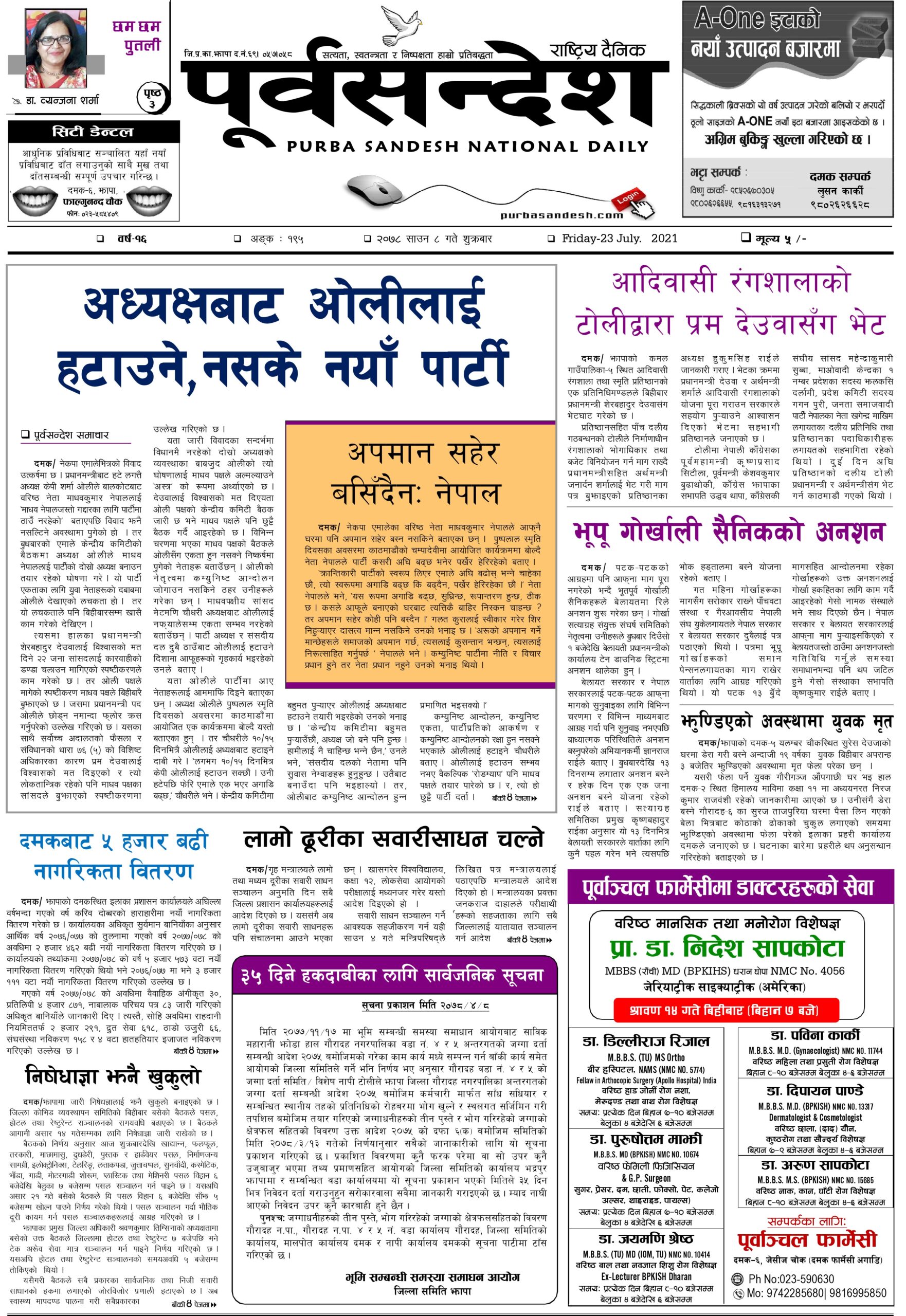 दमक, आश्विन ४/ अखिल नेपाल महिला संघ क्रान्तिकारीले समसामयिक बिषयहरु समेटिएको १२ बुँदे ज्ञापन पत्र बुझाएको छ । सो संगठनले दमक नगरपालिका प्रमुख रोमनाथ...