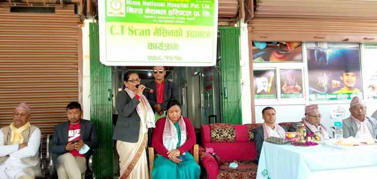 दमक/ झापाको दमक–९ स्थित निम्स नेशनल हस्पिटलले मंगलबारदेखि अस्पतालको सेवालाई थप विस्तार गर्दै सिटीस्क्यान सेवा प्रदान गर्न शुरु गरेको छ । अस्पतालले महाशिवरात्रीको अवसर पारेर बिरामीहरुको सुविधालाई मध्यनजर गर्दै सो सेवा शुरु गरेको हो । अस्पतालका अध्यक्ष उमाकान्त आचार्यको अध्यक्षतामा विशेष कार्यक्रम गरी शुरु गरिएको सिटी स्क्यान सेवाको दमक नगरपालिकाकी उपप्रमुख गीता अधिकारीले उद्घाटन गरिन् ।