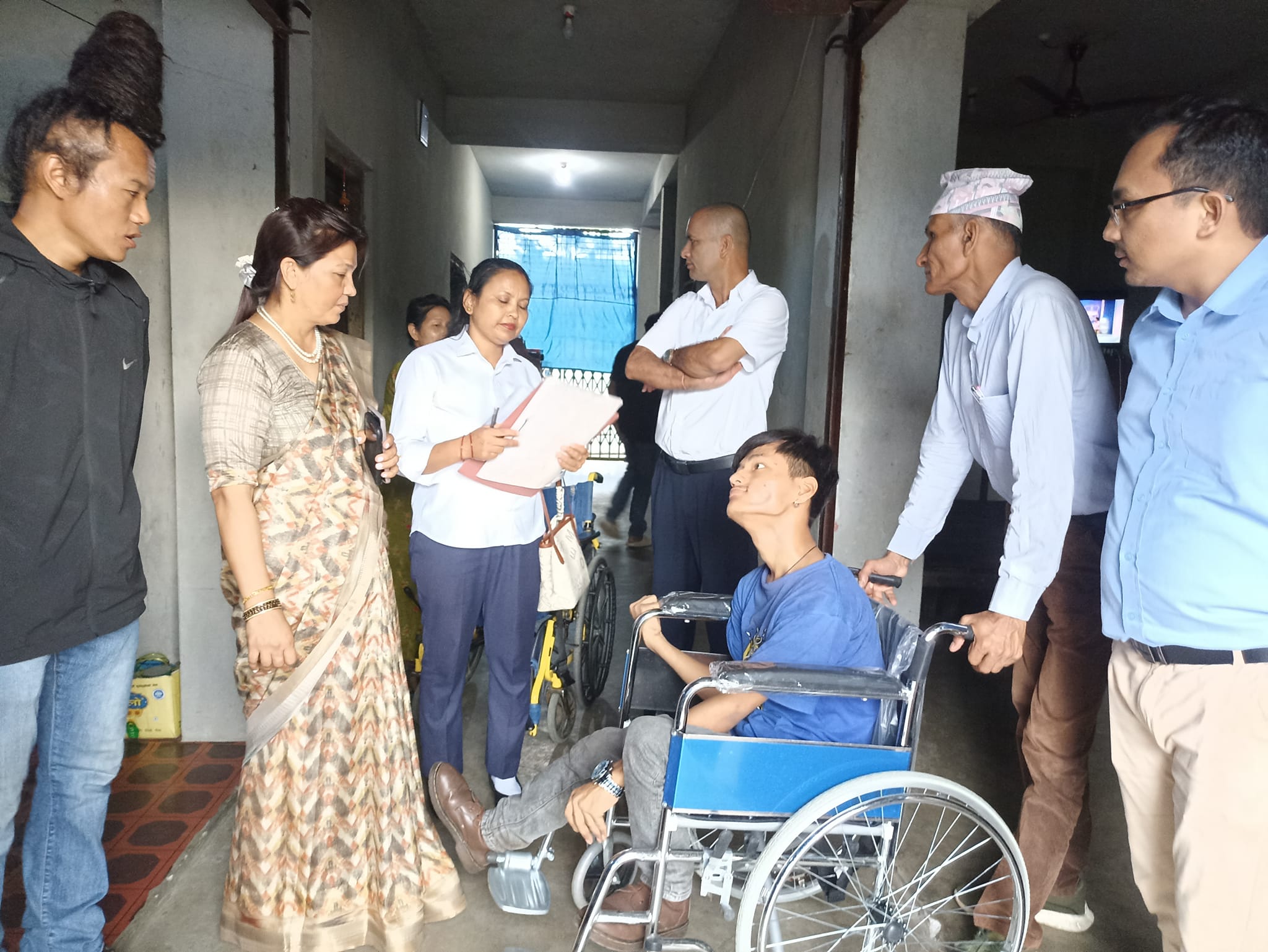 नगरपालिकाकी उपप्रमुख रेगिना भट्टराई प्रसाइँले अनुगमन्पछि छनोटमा परेका अपाङगता भएका ७२ जनालाई मंगलबार र बुधबार उनीहरुको घर घरमै पुगेर १/१ थान ह्वीचियर हस्तान्तरण गरेकी छन् । असक्त अवस्थामा पुगेका ज्येष्ठ नागरिकहरुलाईसमेत ह्वीलचियर वितरण भएको छ ।
