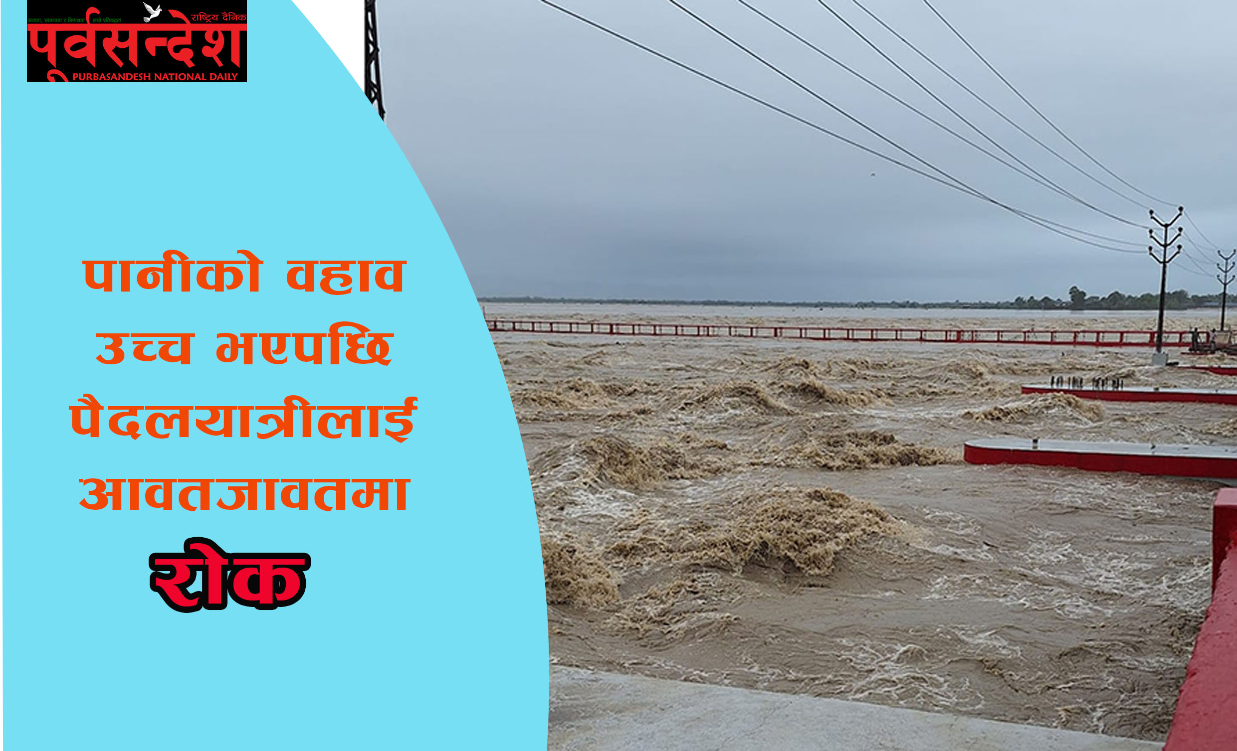 कोशी ब्यारेजमा पानीको बहाव उच्च भएपछि पैदलयात्रीलाई रोक लगाइएको छ ।