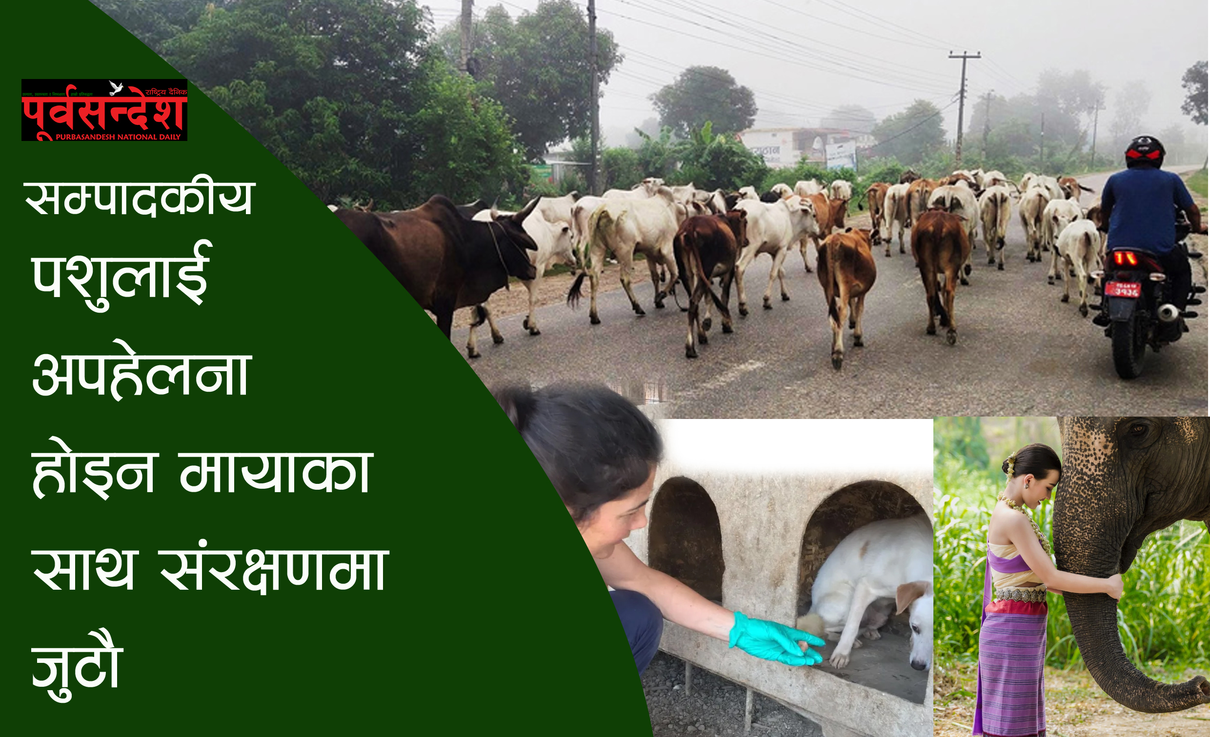 आज अक्टोबर ४ । हरेक वर्ष आजकै दिन विश्वभर अन्तर्राष्ट्रिय विश्व पशु दिवस मनाउने गरिन्छ । नेपालमा आउँदै गरेको विजया दशमीले पशु हत्यालाई प्रश्रय दिएको छ भने अर्कोतिर दिपावलीमा तिनै पशुहरुको संरक्षण र मायाममता देखाउँदै पुजाआजा गरिने संस्कार रहेको छ । त्यति मात्र होइन विभिन्न जनावरलाई विभिन्न देवीदेवताको वाहनको रुपमा पुज्ने चलन छ । तिहारमा काग, कुकुर, गाई र गोरुलाई देवताको प्रतीक मानेर पुज्ने चलन छ । अझ हिन्दू धर्ममा गाईको पूजा अथवा दानलाई सबैभन्दा पूण्यदानसँग तुलना गरिन्छ । राष्ट्रिय जनावरको रुपमा रहेको गाईलगायतका जनावरप्रतिको मानवीय व्यवहार भने क्रुर हुन थालेको छ । गाईले दूध दिने बेलासम्म पाल्ने र दूध दिन छोडेपछि सडकमा छोड्ने प्रवृत्तिले गाई संरक्षणमा चुनौती थपिएको पशु संरक्षणकर्मीले समेत बेलाबखत आवाज उठाउँदै आएका छन् । दिपावलीमा कुकुर तिहार, गाई तिहार, गोरु तिहार लगायतका चाडहरुले त जनावरको विश्वमा उपस्थितीलाई नै पूर्नव्याख्या र पूर्नपरिभाषित गरिदिएको छ ।