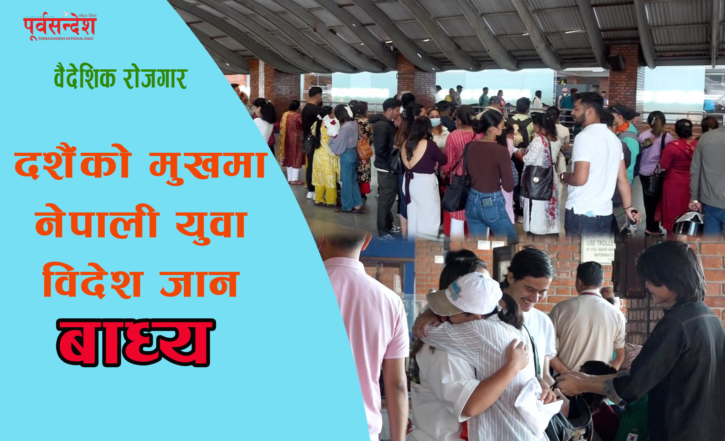 त्रिभुवन अन्तर्राष्ट्रिय विमानस्थलमा युवाहरू विदेश जानका लागि परिवारसँग खुशी र दुःख एकैसाथ साट्दै गरेको दृश्यहरु देख्न सकिन्छ । अधिकांश नेपालीरू दशैंको उत्सवमा रमाइरहँदा केही भने रोजगारी र उच्च शिक्षाका लागि विदेश गइरहेका हुन् । अहिले दशैं मनाउन नपाए पनि परिवारको भविष्यका बारेमा सोचेर आफू विदेशिन लागेको उनीहरूको भनाइ छ ।