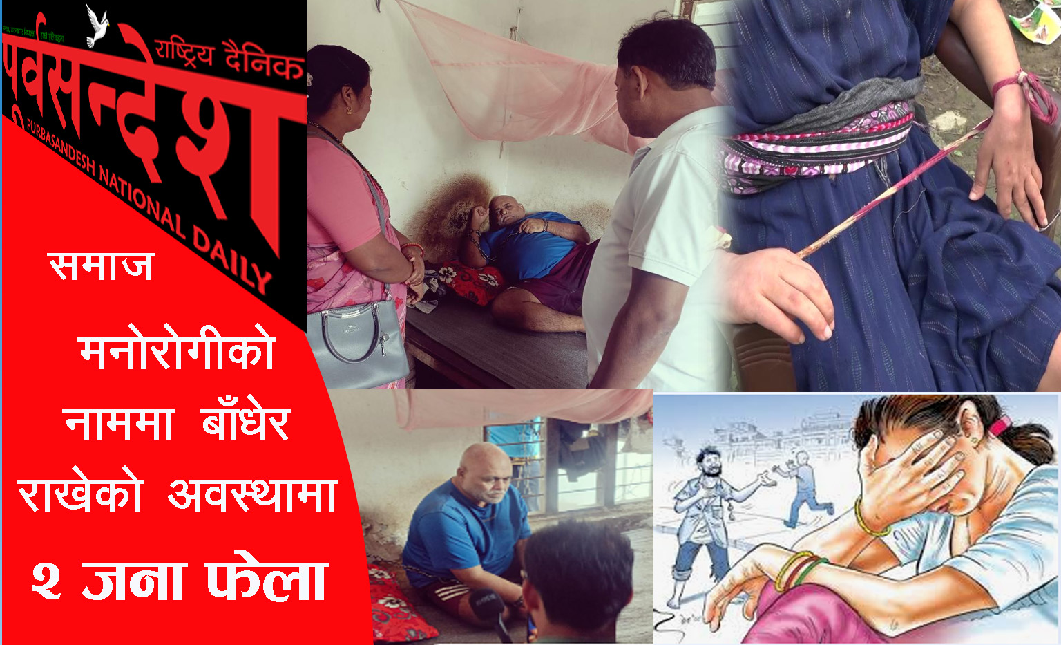 दमक/ अन्धविश्वासले अझै समाज आक्रान्त छ । उपचार गर्दा निको हुने मानसिक रोगी (मनोरोग) का बिमारी हरुलाई तह लगाउने वहानामा बाँधेर अँध्यारो कोठामा राख्ने जस्तो अपराधिक काम अझै निर्मुल भएको छैन । मनोरोगीका लागि अनेकन प्रकारका उपचारका पद्दिति आइसक्दा पनि यसरी गैरकानुनी रुपमा मानिसलाई पशुवत व्यवहार गरेर अमानवीय व्यवहारका घटना अझै पनि समाजमा देखा परिरहेका छन् । उनीहरुको मानवाधिकार हनन गरिरहेका छन् । साङ्लोले बाँधिएको अवस्थामा भेटिएका इटहरीका एक जनाको उद्दार गरिएको छ भने दमकको बेलडाँगी शरणार्थी शिविरमा बाँधेरै राखेको अवस्थामा एकजना युवती फेला परेकी छन् ।