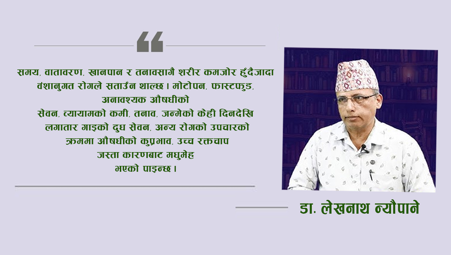 प्रकृतिले हाम्रो शरीरलाई यसरी बनायो कि हरेक समस्याको सामाधान शरीरभित्रै छ । त्यसैले पनि होला बैज्ञानिकले सबै कुरा बनाए तर मानिस बनाउन सकेनन् । सयांै वर्षदेखिको अध्यायन र अनुसन्धानबाट पनि सबै रहस्यहरु पत्ता लगेको छैन । यही अन्योलबीचमा मधुमेहबारे धेरै अध्यायन र अनुसन्धान भएपनि ठूलो संख्यामा मधुमेहका कारण मानिसको मृत्यु हुने गरेको छ ।