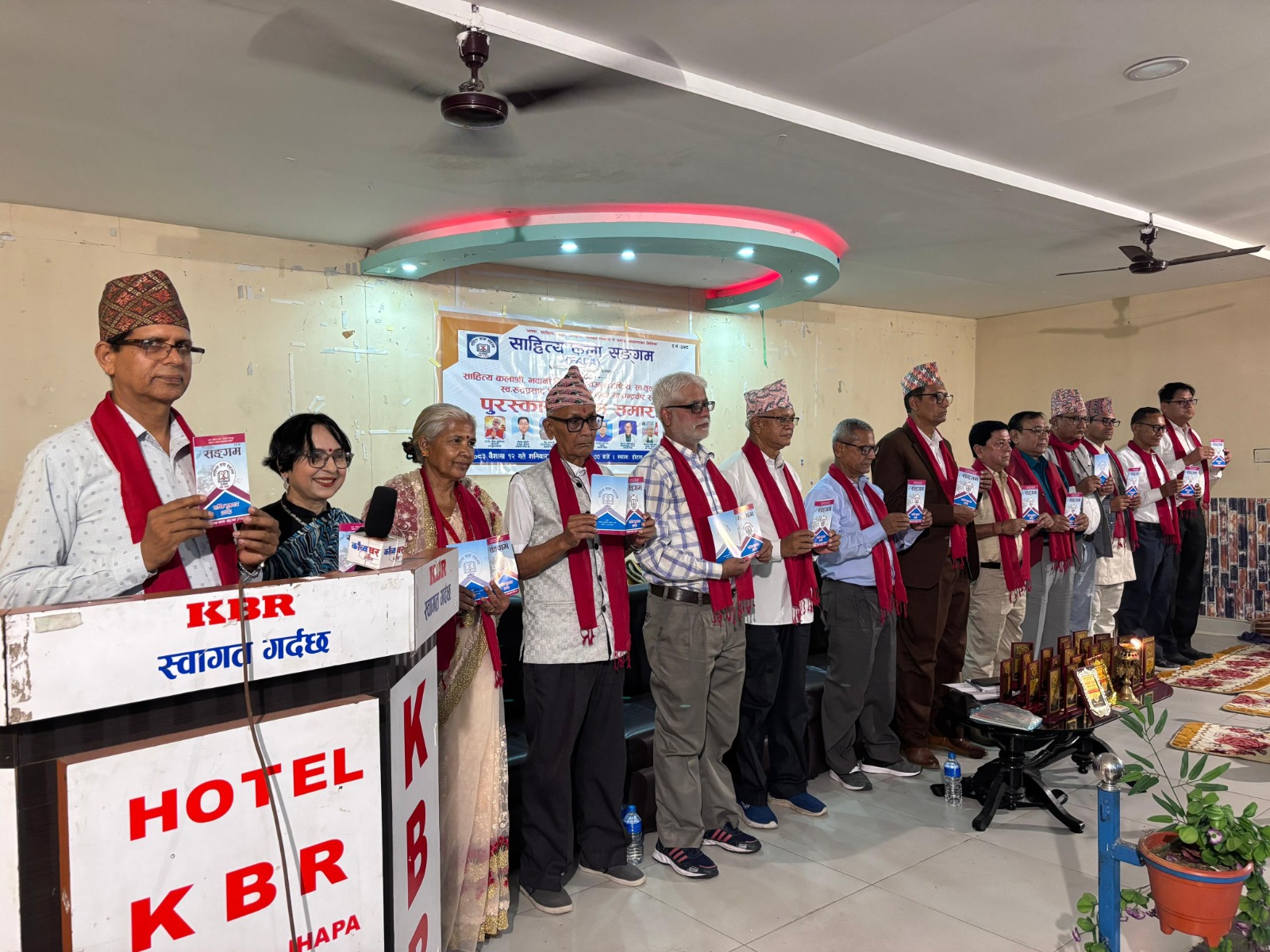 दमक । झापा जिल्लाको दमकस्थित साहित्य कला सङ्गमले आयोजना गरेको ‘पुरस्कार अर्पण समारोहमा राष्ट्रिय तथा अन्तर्राष्ट्रिय साहित्यक श्रष्टालाई सम्मान तथा पुरस्कृत गरेको छ । दमक वडा नं. ८ स्थित केबीआर होटलमा आयोजना गरिएको सो कार्यक्रमको अध्यक्ष संस्थाका अध्यक्ष विन्दु दहाल मुकदर्शकले गरेका थिए भने प्रमुख आतिथ्यता प्रा.डा. गंगाप्रसाद अधिकारीको रहेको थियो ।